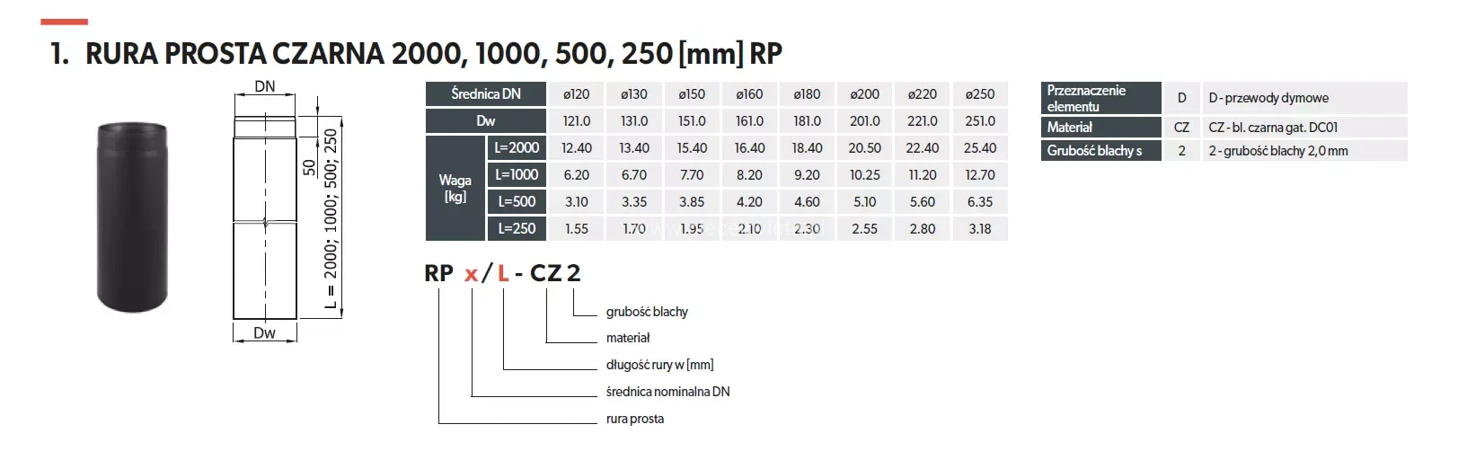 Przyłącza kominowe wykonane są z blach stalowych czarnych w gatunku DC01 o grubości 2,0 mm. Stosuje się je jako przyłącza do odprowadzenia spalin z kominków i urządzeń grzewczych na paliwa stałe (pracujących bez kondensacji), gdzie temperatura spalin może dochodzić do 1000ºC. Maksymalna temperatura pracy ciągłej wynosi 600ºC. Elementy systemu są spawane plazmowo, pokryte czarną lub grafitową farbą SENOTHERM (bezwonną, żaroodporną), łączone kielichowo.