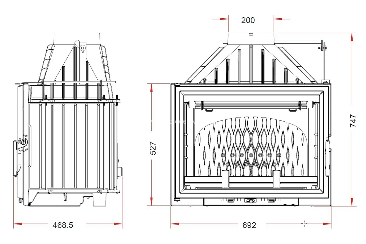 | Wymiary szyby / wizja ognia (wys. x szer.) | 41,3 x 59,7 cm |